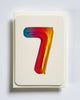 The Birthday Balloon No. 7 Greeting Card by Canonbury Press is a still-life photograph of a gradient foil balloon numeral in pink, blue, and gold on a cream background. Shot by Alexandra Simms. Bold, simple, and a fun way to mark a seventh birthday.