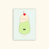 Charlotte Janvier’s Dessert Melon Soda postcard features a tall glass of melon soda topped with ice cream and a cherry, illustrated in her signature graphic style. Fresh, playful, and perfectly retro.