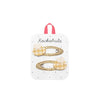 Rockahula's Beryl Bee Clips are a pair of snap clips, each featuring a cheerful little bee in yellow gingham fabric with two small cream wings and a smiley face. The clips are wrapped in gold glitter ribbon. Made using recycled felt and polyurethane.