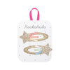 The Rockahula Rainbow Shooting Star Clips are ready to streak a little colour across any hairstyle. Each glittery gold star trails bright rainbow ribbons, perched on a gold ribbon–wrapped snap clip. A playful pair for star catchers and daydreamers alike.