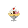 Charlotte Janvier's Banana Split sticker features a joyful banana split stacked with smiling scoops, whipped cream, and a cherry on top, illustrated in her signature playful, character-driven style. Finished with a pixie-dust sparkle that adds just the right amount of shimmer.