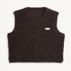 The Happymess Adult Merino Wool Vest in Chocolate Brown is an oversized, unisex layer with a front snap fastening, two inner pockets secured with snaps, and a small Happymess logo patch on the chest. Wear it over a shirt or under a jacket—merino’s natural thermoregulation helps keep warmth in without overheating. The latest batches include the logo patch detail.
