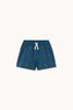 The Diamonds Knitted Shorts by Tiny Cottons are knit shorts in a deep navy with a bold diamond pattern in blue and green. The diamonds run in vertical columns across the fabric, giving them a modern, almost argyle-inspired look. Relaxed fit with an elasticated drawstring waistband in white.