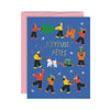 A festive parade in full swing! The Folklorique Greeting Card, illustrated by Anna Maria for Paperole, features cheerful holiday characters dancing, carrying gifts, and spreading seasonal joy—with “Joyeuses Fêtes” in gold lettering at the centre.