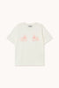 The Rabbit Tee by The Tiny Big Sister is a relaxed-fit cotton tee in off-white with a pair of pink rabbits printed across the chest, each perched above the word "Sister" in soft coral. A crew neck, dropped shoulders, and a boxy cut keep it easy and comfortable.